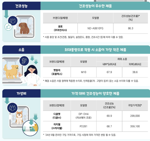 출처: 한국소비자원 2024년 12월 펫드라이룸 품질 비교 시험 결과